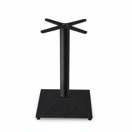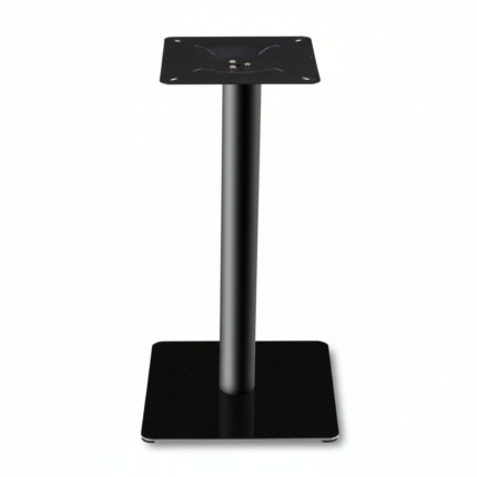 The Atlas is a high-performance industrial-grade table base featuring a refined matte black finish. Its design is centered around a solid, circular floor plate that provides a balanced foundation for round or square tabletops. The seamless cylindrical column rises to a reinforced cross-style mounting bracket, ensuring your surfaces remain secure and wobble-free.